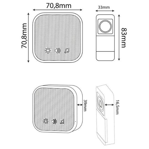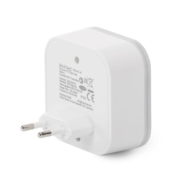 Bezdrátový zvonek německé značky Entac je ideálním řešením bez potřeby řešit rozvody vodičů. Přijímač zvonku jen jednoduše zasunete do zásuvky. Tlačítko je bezdrátové, jen do něj vložíte přiloženou knoflíkovou baterii CR2032 a buď jej přilepíte přiloženou oboustrannou páskou nebo jej můžete přišroubovat.