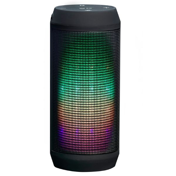 Nabíjecí přenosný Bluetooth reproduktor s FM rádiem s RGB barevnými efekty je ideálním společníkem na cesty, výlety i domácí poslech. Díky kompaktním rozměrům a nízké hmotnosti jej můžete snadno přenášet.