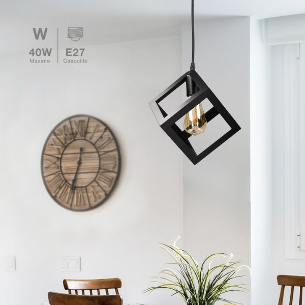 Svítidlo má tvar krychle s délkou hrany 160 mm. Otevřená konstrukce v černém provedení nechává vyniknout samotný světelný zdroj a dodává prostoru moderní, technický vzhled. Díky jednoduchým liniím se lampa snadno kombinuje s různými styly interiéru.