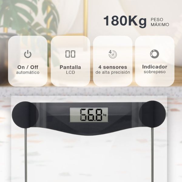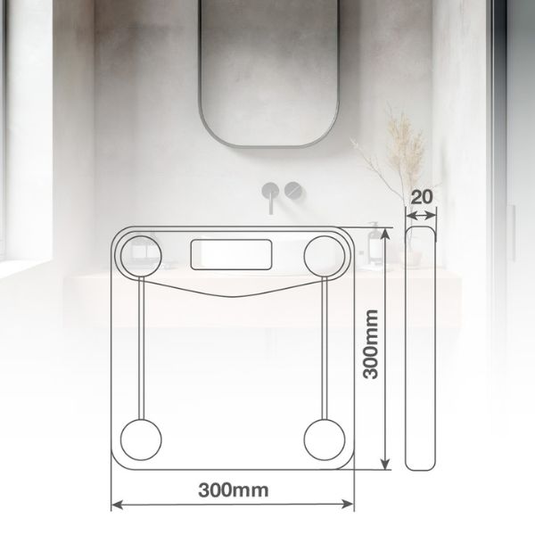 Povrch osobní váhy je vyroben z odolného, 5mm tvrzeného skla. Samozřejmostí jsou zbroušené hrany a kulaté rohy, aby nehrozilo pořezání. Osobní váha stojí na gumových nožičkách s protiskluzovou úpravou.