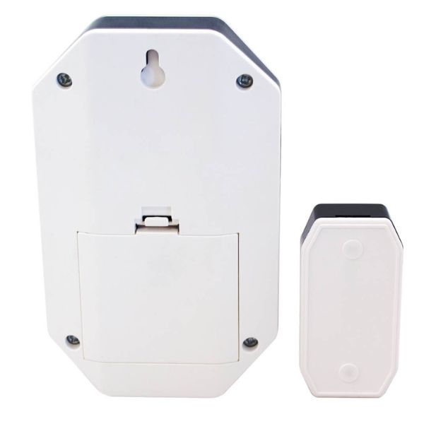 Domovní bezdrátový zvonek GSC na baterie – 1 zvonkové tlačítko na knoflíkovou baterii CR2032 a 1 přijímač na 3 tužkové baterie AA. Tato sada obsahujete vše, co potřebujete – jednoduše spárujete tlačítko s přijímačem podle českého návodu, poté umístíte tlačítko ke dveřím a přijímač buď připevníte na zeď v bytě nebo jej jen položíte a je hotovo. Zvonek je bezdrátový, což výrazně usnadňuje montáž, nemusíte sekat zeď a rozvádět vodiče.