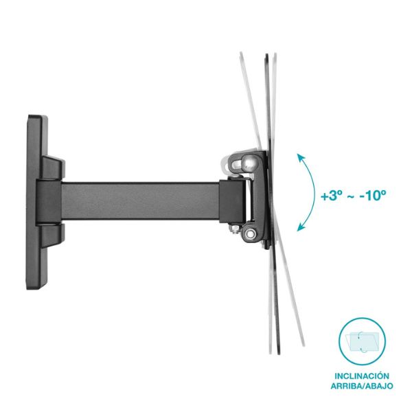 Univerzální a pevný kloubový držák pro malé a střední televizory (23" - 42") od španělské značky Holmios. Ideální řešení, pokud chcete mít možnost vysunout televizi až o 19cm před stěnu a přitom ji moci otáčet až o 90° do stran a naklopit až o 3° nahoru nebo až 10° dolu.