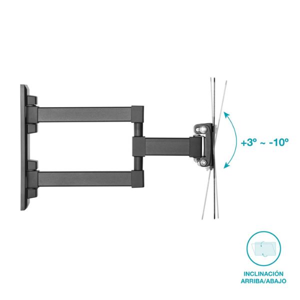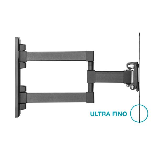 Univerzální a pevný kloubový držák pro malé a střední televizory (23" - 42") od španělské značky Holmios. Ideální řešení, pokud chcete mít možnost vysunout televizi až o 32cm před stěnu a přitom ji moci otáčet až o 90° do stran a naklopit až o 3° nahoru nebo až 10° dolu.