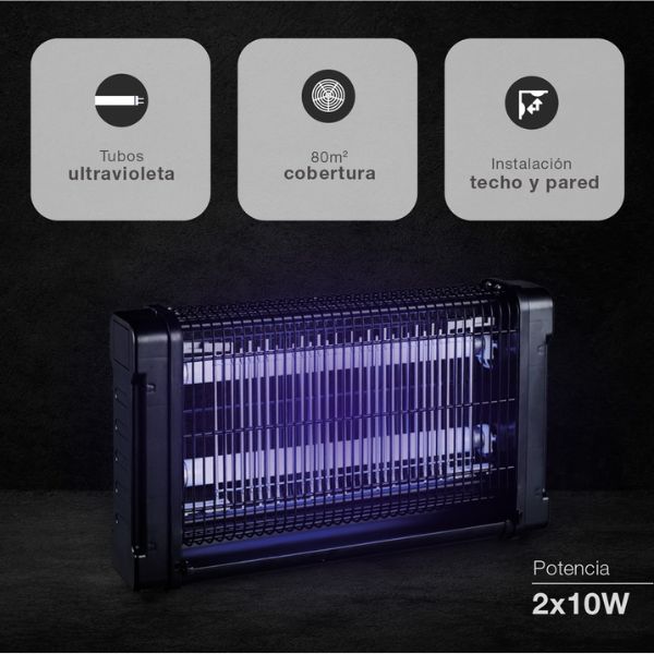 Díky příkonu 2 x 10 W je lapač vhodný pro prostory o velikosti až 80 m2. Ideální je pro použití v domácnostech, kancelářích, chatách, restauracích nebo provozovnách, kde je vyžadován tichý a nepřetržitý provoz.