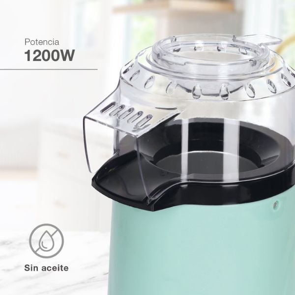 Díky technologii horkého vzduchu se kukuřičná zrna rovnoměrně propečou a vznikne dokonale nadýchaný popcorn už za méně než 3 minuty. Při přípravě se nepoužívá žádný olej, takže výsledný popcorn je lehký, chutný a bez zbytečného tuku.