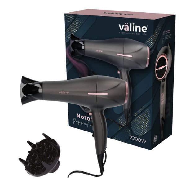 Výkonný fén na vlasy Väline Notos s turmalínovou technologií pro styling jako od profesionála! Na fénu samostatně nastavíte rychlost (2 úrovně) a teplotu (3 úrovně), každé zvlášť, přesně podle Vašich potřeb a typu vlasů. Vysoušeč vlasů má též možnost foukat studený vzduch pro fixaci účesu. Na otvor pro výstup vzduchu můžete nasadit otočný koncentrátor ve tvaru U pro zaměření proudu vzduchu na konkrétní části vlasů pro precizní styling. Anebo můžete nasadit difuzér pro zvlnění rovných vlasů nebo zdůraznění loken u kudrnatých vlasů. Oba jsou součástí balení.