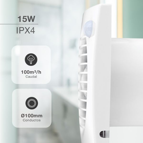 68 m3/h, 15 W, bílý, tichý, pohybové čidlo