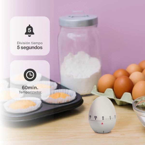 Kuchyňská minutka ve tvaru vejce je ideální pomůckou pro měření času při vaření, pečení nebo přípravě vajec, těstovin či dalších pokrmů. Díky jednoduchému mechanickému ovládání je spolehlivá a nevyžaduje baterie.
