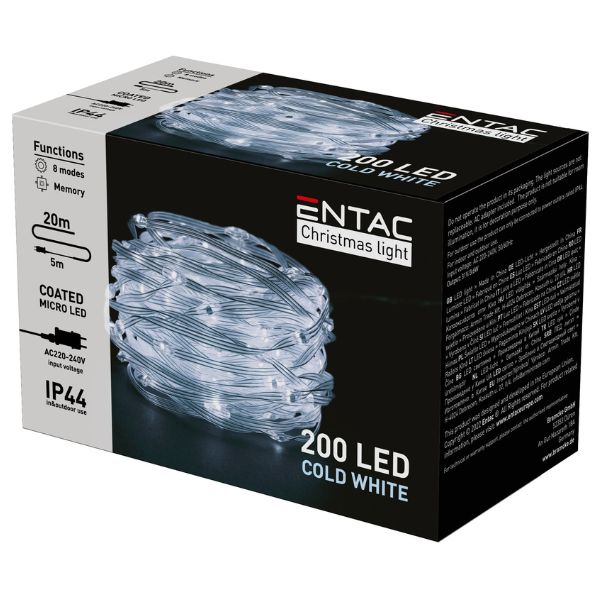 Německá značka Entac: Venkovní vánoční osvětlení za skvělou cenu! Jedná o vysoce úsporný LED vánoční řetěz o výkonu pouze 3,6W, se zástrčkou do zásuvky na 220-240V. Je to tedy kompletní vánoční řetěz, k němuž nemusíte nic dalšího dokupovat.