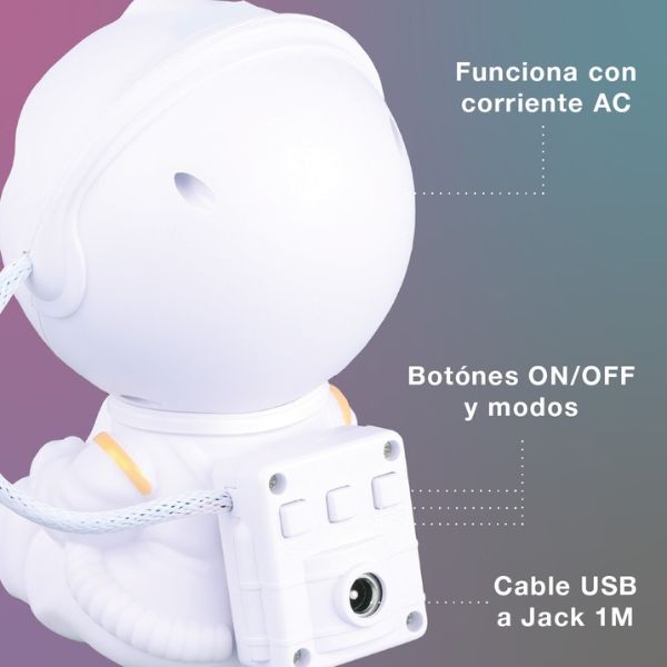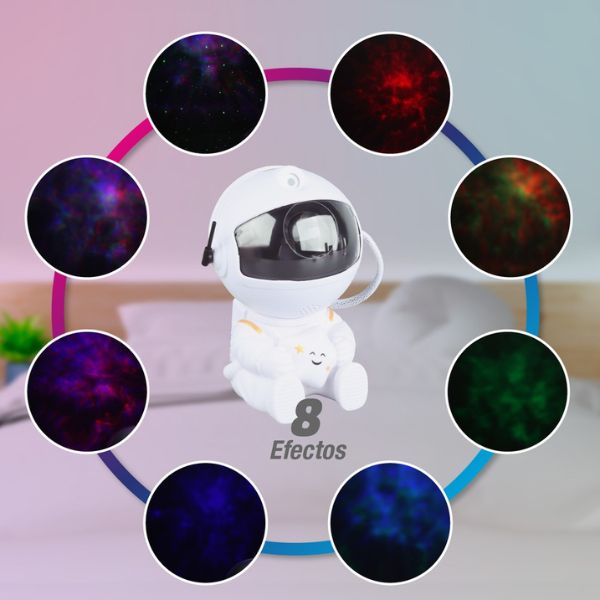 Dětské noční světlo s projektorem noční oblohy ve tvaru astronauta přináší do dětského pokoje fascinující svět vesmíru. Projekce barevných mlhovin a hvězd na stěny a strop vytváří uklidňující atmosféru, která pomáhá dětem relaxovat a snadněji usnout.