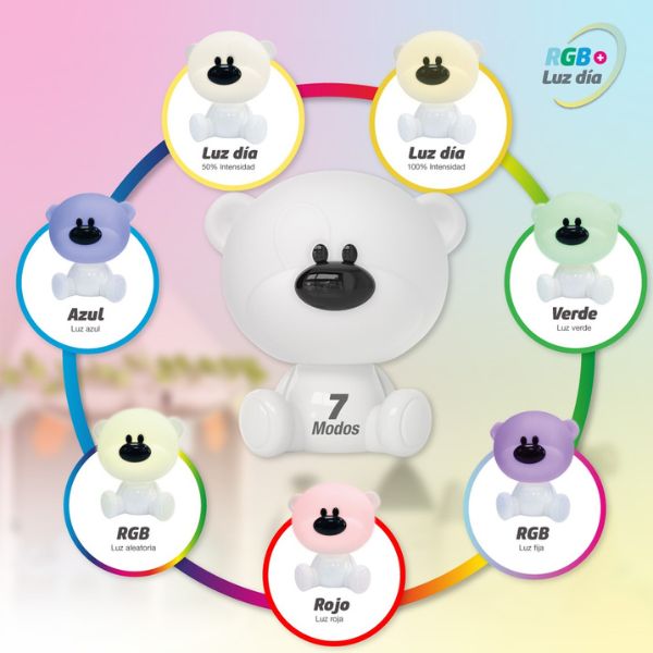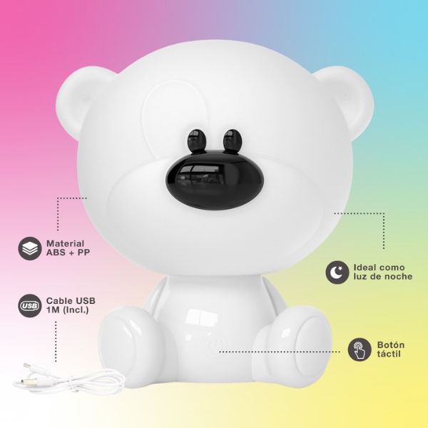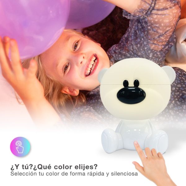 Noční světlo medvěd vytváří příjemné prostředí před spaním a pomáhá dětem překonat strach ze tmy. Jemné světlo neruší spánek a díky možnosti RGB přechodů působí velmi dekorativně.