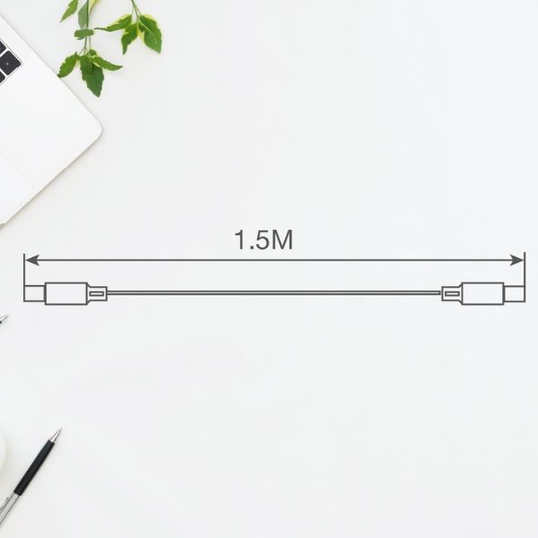 Délka 1,5 m poskytuje dostatek flexibility při používání doma, v kanceláři i na cestách, aniž by kabel zbytečně překážel.