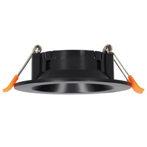 Do podhledu vyříznete kruhový otvor o průměru 70mm. Do zadní části podhledového rámečku, která bude později zapuštěna do podhledu, zatlačíte LED bodovkovou žárovku tak, že držáky zaklapnou a žárovka bude k rámečku napevno připevněna. Žárovku zasadíte do patice, jejíž vodiče připevníte k síti (součástí balení je patice pro LED bodovky GU10, můžete ji nahradit paticí MR16, kterou u nás můžete přikoupit). Po krajích bodovkového svítidla ohnete pružiny směrem nahoru a zasunete svítidlo do montážního otvoru. Pružiny se uvnitř podhledu narovnají a budou rámeček držet na svém místě. Bude-li potřeba vyměnit žárovku, vytáhnete rámeček ven z podhledu a po výměně žárovky jej opět zasunete zpět.