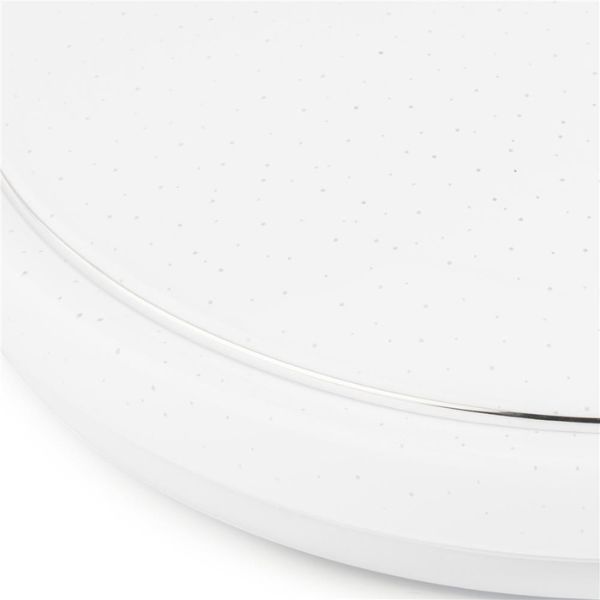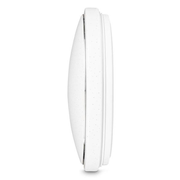 Prémiové LED stropní svítidlo o průměru 33cm od německé značky AVIDE. LED svítidlo má na bíle zbarveném difuzoru malá průhledná místa, jimiž světlo proniká intenzivněji, než bílým okolím. Tyto body lámou světlo jinak, než jejich okolí, což vytváří zajímavý efekt, který je však patrný pouze při přímém pohledu do svítidla, jinak žádným způsobem neruší a nerozptyluje.