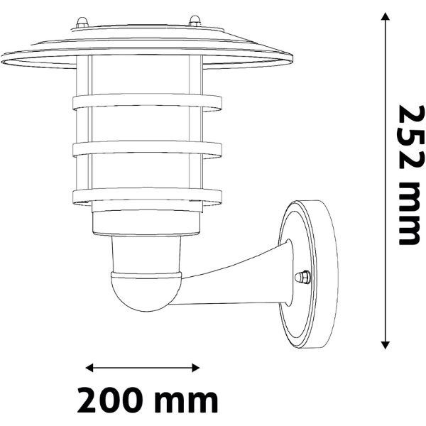Prémiové venkovní nástěnné svítidlo na 1 led žárovku s velkým závitem E27 o příkonu max 20W, fungující na napětí 220-240V.