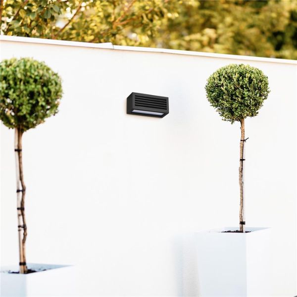 Toto venkovní svítidlo ve je perfektním řešením pro osvětlení vchodu do domu, pergoly, terasy, apod. Jedná se o kvalitní venkovní svítidlo jehož robustní tělo je vyrobeno z práškově lakovaného hliníku, který nikdy nezrezne. Kryt žárovky je vyroben z mléčně zbarveného plastu, který je odolnější proti prasknutí, než sklo a světlo lampy Vás neoslní. Světlo prochází kryty na horní a dolní straně svítidla a na přední straně je tlumeno a směrováno dolu žebrovím před krytem. Při montáži je třeba svítidlo umístit tak, aby toto žebroví směřovalo směrem dolu a tím pádem se v něm nezachytávaly nečistoty, sníh, voda apod.