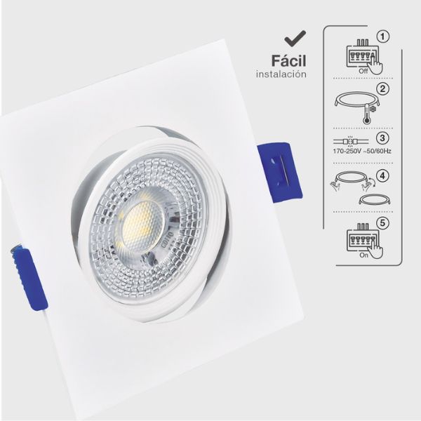 Toto vestavné bodové led svítidlo můžete montovat do podhledů v interiéru s volným prostorem alespoň 5cm. Velikost kruhového montážního otvoru může být v rozmezí 70-75mm. Jedná se o svítidlo se zabudovaným, nevyměnitelným LED zdrojem světla. Tělo led bodového svítidla je vyrobeno ze speciálního teploodvádějícího plastu, zajišťuje efektivní odvod tepla a tím zvyšuje životnost led čipů vydávajících světlo.