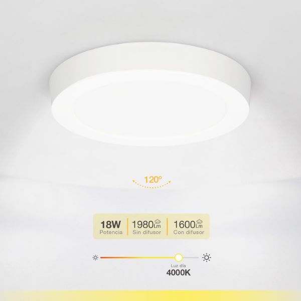 Přisazený LED panel svítí denní bílou barvou světla. Tato barva světla se blíží barvě slunečního světla přes den a pro většinu lidí je nejlepší na oči. Proto se obvykle používá v kuchyni, pracovně, kanceláři, na čtení atd.