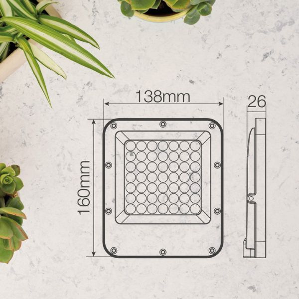 - Rozměry: výška 160 mm, šířka 138 mm, hloubka 26 mm