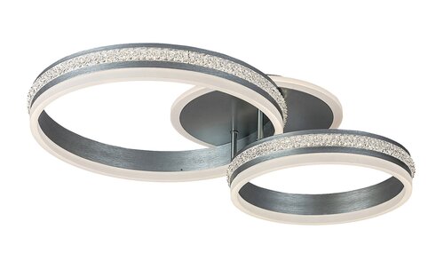 Minimalistické stropní svítidlo Avalon bude výjimečným doplňkem k zařízení vašeho obývacího pokoje, jídelny nebo ložnice. Kovové svítidlo v barvě broušeného hliníku je doplněno o bílá akrylová stínítka a svítidlo lze upevnit na strop pomocí kulaté dekorativní základny. Zajímavý charakter dodávají svítidlu Avalon dva prstencové prvky, které jsou kolem dokola zdobeny křišťálovým zdobením. Toto stropní svítidlo obsahuje vestavěný LED světelný zdroj s výkonem 50W, světelným tokem 3150 lumenů a životností 20 000 hodin. Svítilna s barevnou teplotou 4 000 K vyzařuje přirozené bílé světlo. Rozměry svítidla Avalon jsou následující: šířka 650mm, vzdálenost od stropu 150mm, instalační průměr 190mm. Na tento vynikající model poskytujeme 5letou záruku.