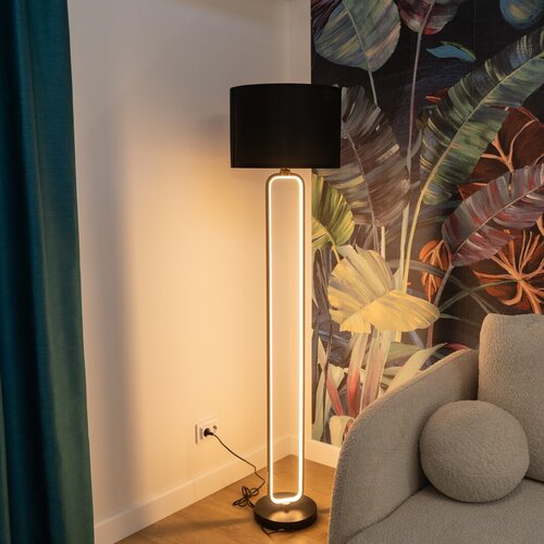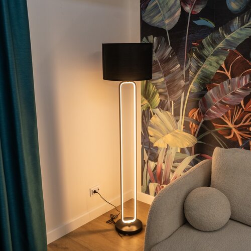 Stojací lampa Rabalux Domiro je doporučena těm, kteří chtějí spojit energetickou účinnost s moderním a elegantním designem. Tento model je vyroben s kovovou konstrukcí ve zlaté barvě a černým válcovitým textilním stínidlem, zatímco jeho stabilitu zajišťuje kulatá černá dekorativní základna. Stojací lampa je ovládána vypínačem a obsahuje vestavěný LED světelný zdroj, který v kreativním řešení vyzařuje teplé bílé světlo uvnitř rámu tvořícího rameno lampy. Tento zdroj lze doplnit světelnou žárovkou o výkonu až 60 W, která se umisťuje do objímky kryté stínidlem. Typ objímky je E27. Tento jedinečný model je ideální do obývacího pokoje nebo ložnice. Díky LED technologii se vyznačuje energeticky úsporným provozem a dlouhou životností. Lampa se dodává bez světelného zdroje.