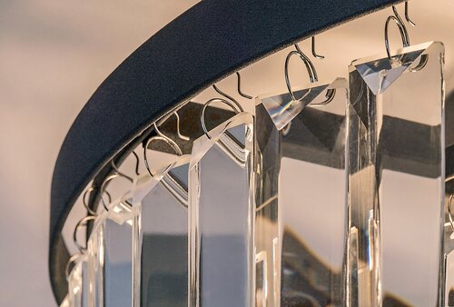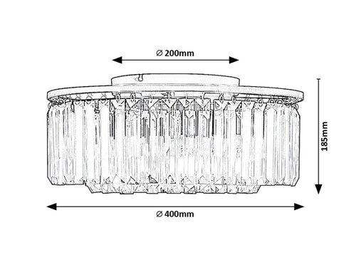 Elegantní stropní svítidlo Eloisa v klasickém stylu může být ozdobou vašeho obývacího pokoje nebo ložnice. Doporučujeme jej především těm, kteří mají rádi lesklé, poutavé modely. Černá kovová svítilna doplňují průhledné skleněné závěsy, které zakrývají světelný zdroj jako kruhový závěs a dodávají tomuto modelu vzhled lustru. Eloise lze připevnit na strop pomocí kulatého černého ozdobného podstavce. Lampu lze používat se třemi světelnými zdroji každý s maximálním příkonem do 25 W a s paticemi typu E27. Pokud je tento zářivý model namontujete v ložnici, doporučujeme použít zdroj teplého bílého světla, který pomůže vytvořit útulnou domácí atmosféru, uvolnit oči a pomůže vám uvolnit se před usínáním. Rozměry stropního svítidla Eloise jsou tyto: průměr 400 mm, vzdálenost od stropu 185 mm, instalační průměr 200 mm. Tento model se dodává bez světelných zdrojů.