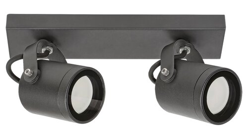 Venkovní dvojité bodové svítidlo Elva v průmyslovém stylu je vyrobeno v antracitové barvě s průhledným stínítkem. Svítidlo s prodlouženou čtvercovou paticí je vyrobeno z hliníku, zatímco stínítko je vyrobeno ze skla. Tento model bude skvělou volbou pro terasu nebo vnější stěnu domu. Díky nastavitelným hlavám svítidla můžeme ovládat světlo svítidla podle přání. Může být použito se dvěma zdroji světla s výkonem až 35W, patice je GU10. Pokud chcete moderní a čistý efekt, vyberte si žárovku v přírodním bílém provedení. Model Elva má krytí IP44, tj je chráněný proti vniknutí předmětů s maximálním průměrem 1 mm, jakož i proti stříkající vodě z kteréhokoliv směru. Rozměry vnějšího svítidla jsou následující: šířka 300 mm, výška 100 mm, vzdálenost od stěny 160 mm. Svítidlo se dodává bez světelných zdrojů.