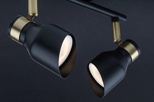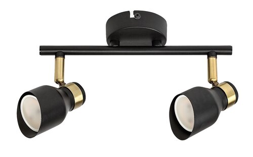 Dvojité stropní svítidlo Lilou v moderním stylu je vhodnou volbou do obývacího pokoje, ložnice nebo pracovny. Matný černý model vyrobený výlučně z kovu je doplněn prvky ve zlaté barvě, které dodávají lampě elegantní vzhled. Lilou lze připevnit na strop pomocí malé okrouhlé základny, přičemž hlavy svítidel jsou umístěny vedle sebe na vodorovné tyči připevněné k základně. Hlavy svítidel, které jsou ve spodní části otevřeny a vybaveny válcovými stínítky seříznutými pod úhlem, lze posouvat tak, aby se jejich světlo dalo nasměrovat podle potřeby. Lampu Lilou lze provozovat se dvěma světelnými zdroji každý s maximálním příkonem do 25 W, typ patice GU10. V závislosti na našem vkusu a místě instalace si pro lampu můžeme vybrat teplé nebo zdroje přirozeného bílého světla. Rozměry dvojitého stropního svítidla Lilou jsou tyto: šířka 250 mm, průměr každého stínítka 55 mm, vzdálenost lampy od stropu 180 mm, instalační průměr 80 mm. Tento model se dodává bez světelných zdrojů.