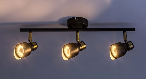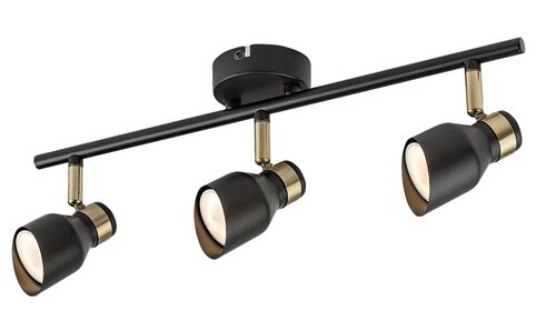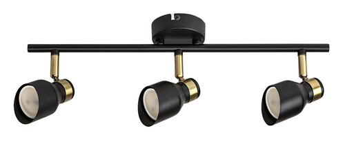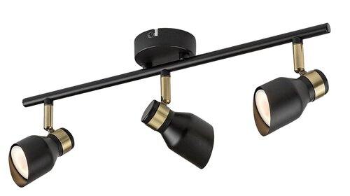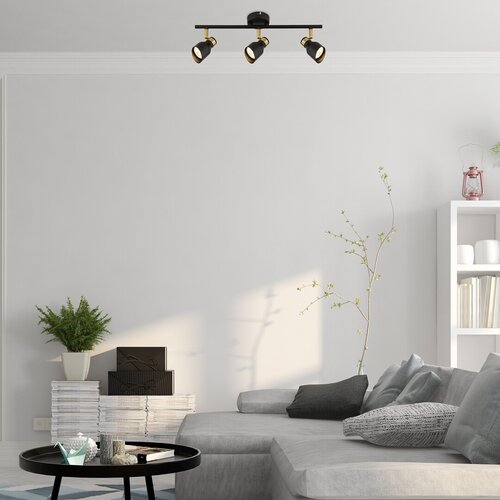 Trojité stropní svítidlo Lilou v moderním stylu je rovněž vhodnou volbou do obývacího pokoje, ložnice nebo pracovny. Matný černý model vyrobený výlučně z kovu je doplněn prvky ve zlaté barvě, které dodávají lampě elegantní vzhled. Lilou lze připevnit na strop pomocí malé okrouhlé základny, přičemž hlavy svítidel jsou umístěny vedle sebe na vodorovné tyči připevněné k základně. Hlavy svítidel, které jsou ve spodní části otevřeny a vybaveny válcovými stínítky seříznutými pod úhlem, lze posouvat tak, aby se jejich světlo dalo nasměrovat podle potřeby. Lampu Lilou lze provozovat se třemi světelnými zdroji každý s maximálním příkonem do 25 W, typ patice GU10. V závislosti na našem vkusu a místě instalace si pro lampu můžeme vybrat teplé nebo zdroje přirozeného bílého světla. Rozměry trojitého stropního svítidla Lilou jsou tyto: šířka 450 mm, průměr každého stínítka 55 mm, vzdálenost lampy od stropu je 180 mm, instalační průměr 80 mm. Tento model se dodává bez světelných zdrojů.