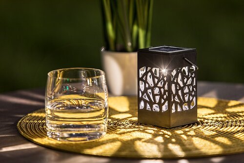 Solární lampa Mora bude velmi útulným doplňkem vaší verandy nebo zahrady. Můžete ji položit na podlahu, na stůl nebo ji někde zavěsit. Černé závěsné dekorativní svítidlo je vyrobeno z plastu a jeho vestavěný světelný zdroj LED vytváří teplé bílé světlo. Energeticky úsporný zdroj energie je 0,07 W, jeho svítivost je 1,2 lumenů, teplota jeho barvy je 3000 K a životnost je 20 000 hodin. Údaje o solárních článcích: AAA NiMH 200 mAh. Výška čtvercového vnějšího dekorativního svítidla 60x60 mm je 100 mm. Má ochranu IP23, tj je chráněno proti proniknutí, jestliže jsou předměty s maximálním průměrem 12 mm (např. prsty) a proti pronikání dešťové vody do 60°.