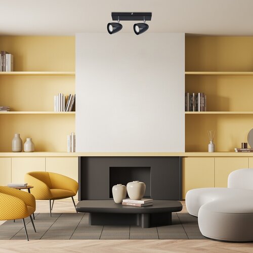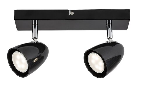Moderní stropní svítidlo Perico se dvěma světly se doporučuje do obývacích pokojů, ložnic nebo pracoven. Černé kovové svítidlo je doplněno lesklými černými plastovými stínítky a lze jej připevnit ke stropu pomocí obdélníkového ozdobného podstavce. Díky pohyblivé hlavě lampy můžete světlo nasměrovat podle svých představ v pokoji. Lampu Perico lze používat se dvěma světelnými zdroji každý s maximálním příkonem do 5 W, typ patice GU10. V závislosti na vašem vkusu a místě instalace si můžete vybrat zdroje teplého nebo přirozeného bílého světla. Chcete-li tuto lampu používat v ložnici, doporučujeme použít zdroj teplého bílého světla, který pomůže vytvořit útulnou domácí atmosféru. Rozměry dvojitého stropního svítidla Perico jsou tyto: šířka 260 mm, průměr každého stínítka 70 mm, vzdálenost od stropu 150 mm. Tento model se dodává bez světelných zdrojů.