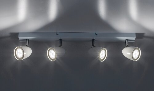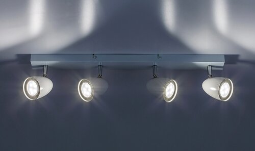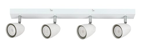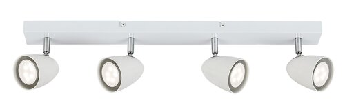Moderní stropní svítidlo Perico se čtyřmi světly se doporučuje do obývacích pokojů, ložnic nebo pracoven. Bílé kovové svítidlo je doplněno elegantními bílými plastovými stínítky a lze jej připevnit ke stropu pomocí obdélníkového ozdobného podstavce. Díky pohyblivým hlavicím vedle sebe lze tento model použít k efektivnímu osvětlení větší místnosti. Lampu Perico lze používat se čtyřmi světelnými zdroji každý s maximálním příkonem do 5 W, typ patice GU10. V závislosti na vašem vkusu a místě instalace si můžete vybrat zdroje teplého nebo přirozeného bílého světla. Chcete-li tuto lampu používat v ložnici, doporučujeme použít zdroj teplého bílého světla, který pomůže vytvořit útulnou domácí atmosféru. Rozměry čtyřitého stropního svítidla Perico jsou tyto: šířka 600 mm, průměr každého stínítka 70 mm, vzdálenost od stropu 150 mm. Tento model se dodává bez světelných zdrojů.