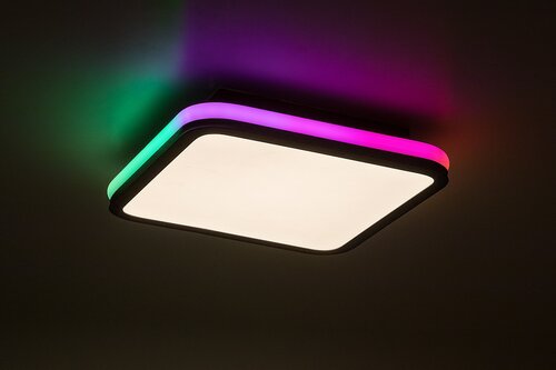 Chytré stropní svítidlo Rabalux Serkan je ideální volbou pro ty, kteří hledají model kombinující rozsáhlé funkce s čistým vzhledem. LED svítidlo je vyrobeno z kovu v černé barvě s bílým plastovým stínidlem. Čtvercový tvar svítidla je změkčen zaoblenými rohy. Obsahuje vestavěný LED světelný zdroj, jehož teplotu barvy lze upravovat dálkovým ovládáním nebo nástěnným vypínačem. Svítidlo je schopné RGB osvětlení, které zvýrazňuje pásek probíhající po obvodu konstrukce. Tato vnější část může být zapínána samostatně. Pomocí dálkového ovladače, který je součástí balení, lze také nastavit jas a využít funkci paměti. Díky LED technologii se stropní svítidlo vyznačuje energeticky úsporným provozem a dlouhou životností. Tento univerzální model je doporučován do obývacího pokoje, jídelny nebo ložnice.