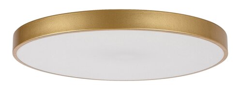 Velké kulaté stropní svítidlo Tesia doporučujeme těm, kteří hledají jednoduchý, ale elegantní a všestranný model do moderního obývacího pokoje nebo ložnice. Toto svítidlo s tenkým provedením je praktické a prostorově nenáročné, ale zároveň bude spolehlivě osvětlovat místnost po mnoho let. Lampa zlaté barvy z kovu je doplněna o bílé plastové stínítko. Tesia má zabudovaný LED světelný zdroj s výkonem 60 W, svítivostí 3760 lumenů se stínítkem, 4800 lumenů bez stínítka a mimořádnou životností: 50 000 hodin! Barevnou teplotu světelného zdroje bez blikání lze nastavit mezi 3000 a 6000 K, tzn. může svítit teplým, přirozeným nebo studeným bílým světlem. Lampa je také stmívatelná, čili lze regulovat její jas, má i paměťovou a noční funkci. CRI (index podání barev) Tesia je nad 80%, což se považuje za mimořádně dobré. Průměr stropního svítidla je 600 mm a vzdálenost od stropu pouhých 50 mm.