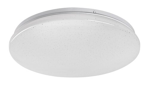 Kulaté stropní svítidlo Vendel se třpytivým efektem se vyznačuje jednoduchým čistým designem, díky kterému může být tento model decentním praktickým kusem nábytku téměř v každém moderním obývacím pokoji či ložnici. Pokud hledáte centrální zdroj světla do místnosti, Vendel může být vynikající volbou se svými velkými rozměry a značnou svítivostí. Bílé tělo svítidla vyrobené z kovu je doplněno o bílé plastové stínítko. Vendel má zabudovaný LED světelný zdroj energetické třídy G, který má výkon 24 W, svítivost 1970 lumenů se stínítkem, 2400 lumenů bez stínítka a opravdu fantastickou životnost: 50 000 hodin! Světelný zdroj s barevnou teplotou 4000 K svítí teplým bílým světlem, proto je toto stropní svítidlo obzvlášť dobrou volbou do obývacího pokoje, kde svým moderním, čistým efektem skvěle podpoří společné aktivity ve večerních hodinách. Rozměry stropního svítidla Vendel: průměr 375 mm, montážní průměr 355 mm a vzdálenost od stropu jen 55 mm.