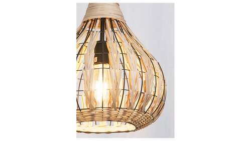 Se závěsným svítidlem Zahara v tropickém stylu si můžete vytvořit příjemnou atmosféru ve vašem obývacím pokoji, kuchyni nebo zimní zahradě vybavené podobným nábytkem. Svítidlo Zahara vyrobené z kovu a ratanu připomíná hrušku, pokud jde o jeho tvar, a jeho světlo je jemně filtrované pletenými motivy. Svítidlo je vybaveno kulatým dekorativním podstavcem a může být použito s jediným zdrojem světla až 40 W, závit typu E27. Pokud si chcete v místnosti vytvořit skutečně intimní a útulnou atmosféru, vyberte si zdroj teplého bílého světla. Průměr kulatého stínítka svítidla Zahara je 340 mm a vzdálenost závěsné lampy od stropu je 1200 mm. Lampa se dodává bez zdroje světla.