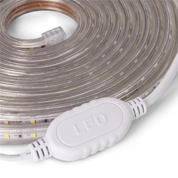 Tato sada obsahuje základní komponenty pro provozování led pásku na 220V - voděodolný led pásek 220V ukončený zástrčkou do zásuvky, nic víc nepotřebujete. Tento led pásek se typicky používá pro venkovní světelné dekorace, třeba o Vánocích.