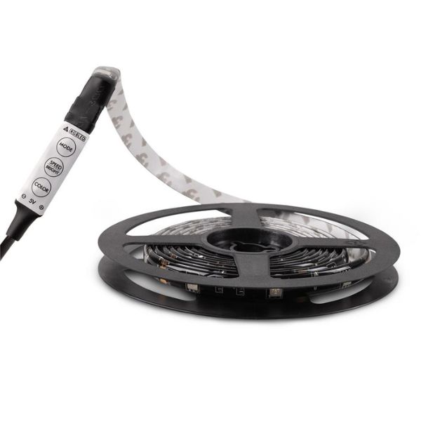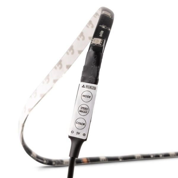 Jedná se o ucelenou sadu, která obsahuje 2m voděodolného led pásku se samolepící zadní stranou k přilepení na odmaštěný povrch. V případě potřeby lze led pásek zkrátit. Led pásek je ukončen ovládáním, kterým můžete RBG led pásek ovládat, jak je uvedeno výše. Z ovladače vede kabel s koncovkou USB pro zapojení napájení.