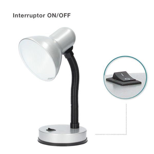 Lampa je vybavena pevnou a stabilní základnou, která zajišťuje bezpečné postavení na stole, nočním stolku nebo pracovní desce. Vypínač je umístěn přímo na podstavci, což umožňuje pohodlné zapínání a vypínání bez hledání přepínače na kabelu.