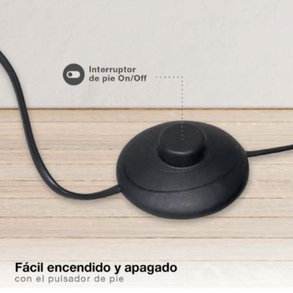 Napájecí kabel o délce 1,8 m umožňuje pohodlné umístění lampy i dále od elektrické zásuvky, což zvyšuje flexibilitu při zařizování interiéru. Nožní vypínač lampy je umístěn na kabelu.