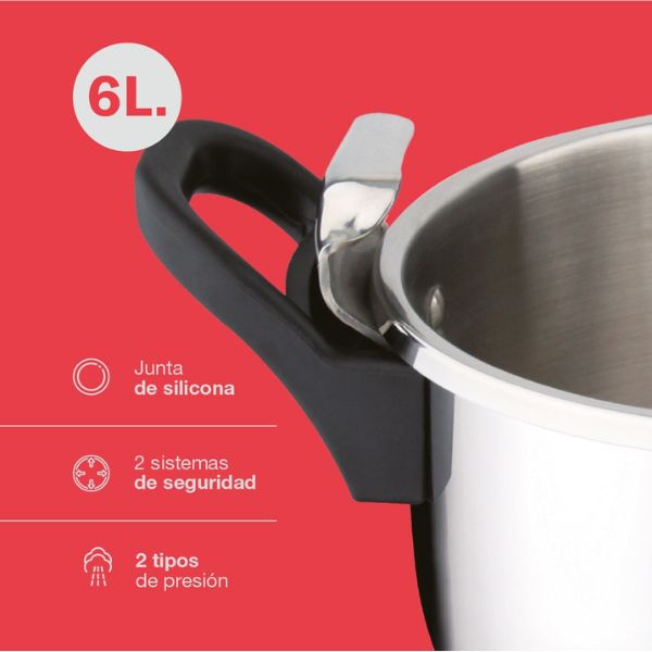 Tlakový hrnec je vybaven dvěma bezpečnostními systémy, které zajišťují bezpečné používání při každodenním vaření. O regulaci tlaku se stará gravitační ventil, který automaticky udržuje správnou úroveň tlaku uvnitř hrnce.