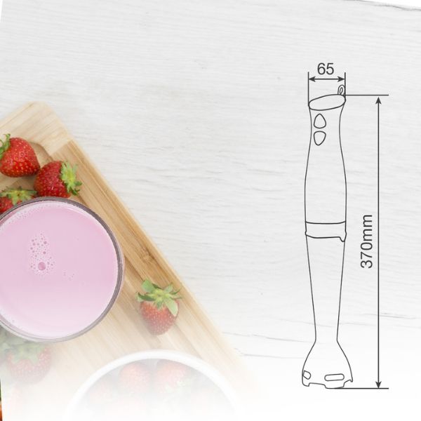 Tyčový mixér má dvoukřídlovou čepel z nerezové oceli. Noha je odnímatelná, což výrazně usnadňuje mytí. Na horní části mixéru je poutko pro zavěšení. Napájecí kabel bílé barvy má délku 75cm.
