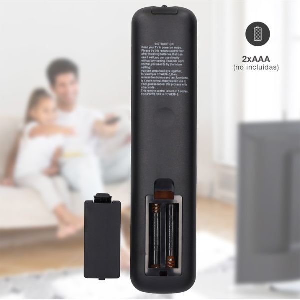 Univerzální dálkové ovládání pro Hisense Smart TV španělské značky Holmios na 2 mikrotužkové baterie AAA.