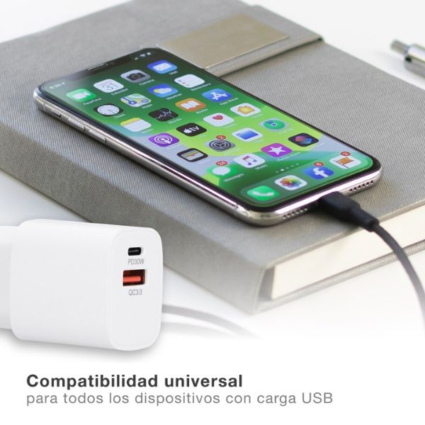 USB nabíjecí adaptér s 1 USB A a 1 USB C slotem se zástrčkou do sítě pro nabíjení multimediálních zařízení jako je mobilní telefon, navigace ale i třeba lampiček a dalších spotřebičů s napájením USB. USB kabel není součástí balení.