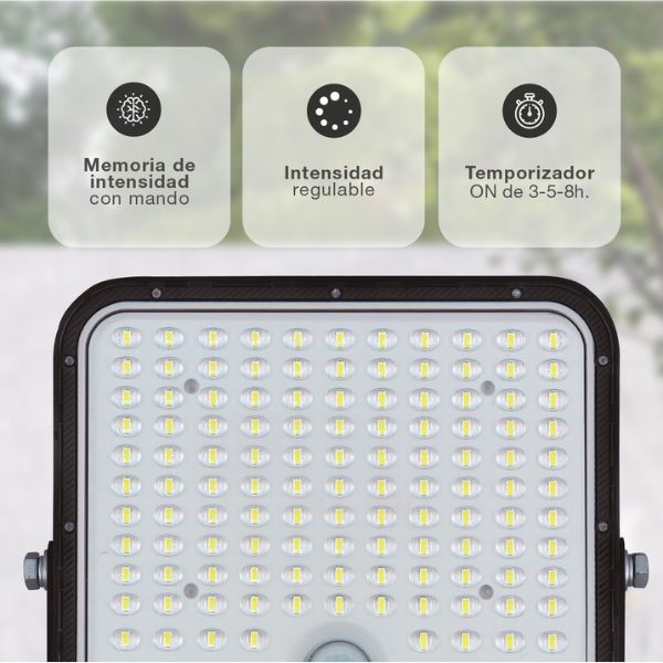 Venkovní solární LED reflektor s čidlem pohybu 200W, 5500 lm, studená bílá, dálkové ovládání