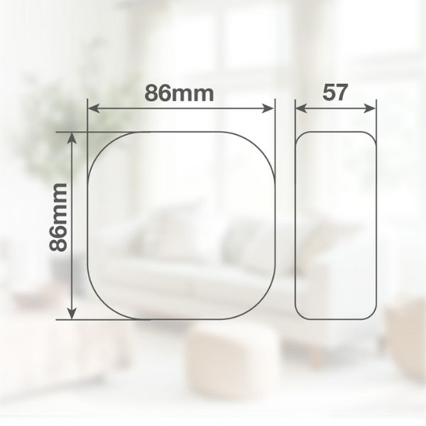 - Rozměry: výška 86 mm, šířka 86 mm, hloubka 57 mm