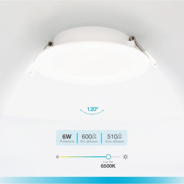 Kruhový vestavný LED panel se spotřebou 6W, fungující na napětí 230V.